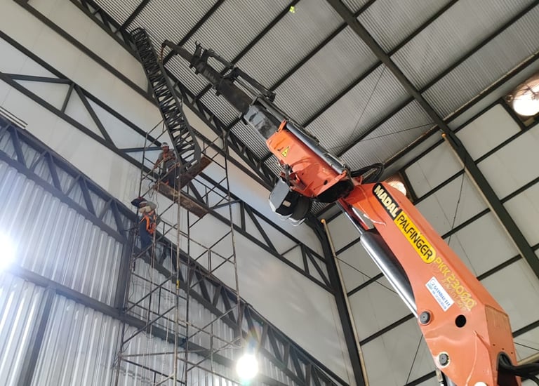 Atuamos com içamento e movimentação de cargas pesadas, transporte de máquinas e equipamentos, montagem de estruturas e apoio logístico para construções e manutenções industriais. Nosso caminhão Munck passa por manutenção constante, garantindo um serviço confiável e de qualidade.
